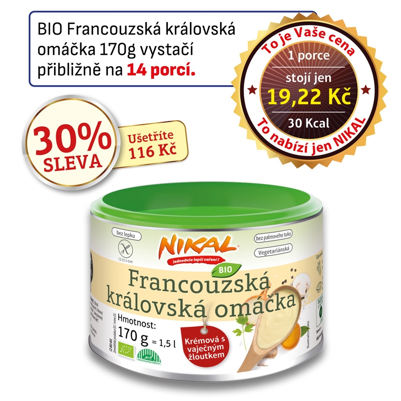 BIO Francouzská královská omáčka NIKAL je Vaším žolíkem pro krémové, máslové potěšení. Tento trumf mezi omáčkami se vždy dokonale povede a skvěle doplní vše, co máte rádi.