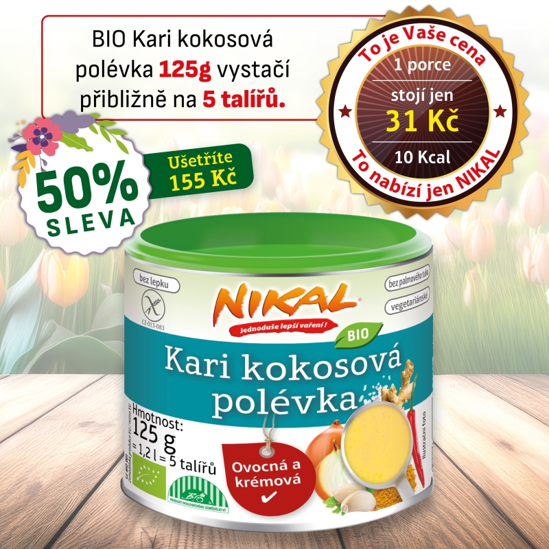 Máte chuť na něco netradičního a plného výrazných chutí? Naše Asijská kokosová polévka s kari vnese do vašeho talíře vůni a atmosféru daleké Asie. Spojení jemně pikantního kari s krémovým kokosovým mlékem a pečlivě vyvážené koření tvoří harmonický chuťový zážitek. Můžete ji snadno obohatit například cukrovým hráškem, mrkví či krevetami – nebo ji podávat s rýžovými či skleněnými nudlemi a čerstvým zázvorem jako hlavní jídlo. Tip: Čerstvý zázvor dodá polévce typickou asijskou pikantnost. Polévka je rostlinná, rychle připravená a plná chuti – prostě lžíce Asie na každý den!