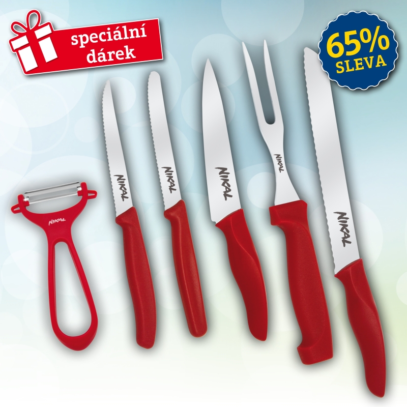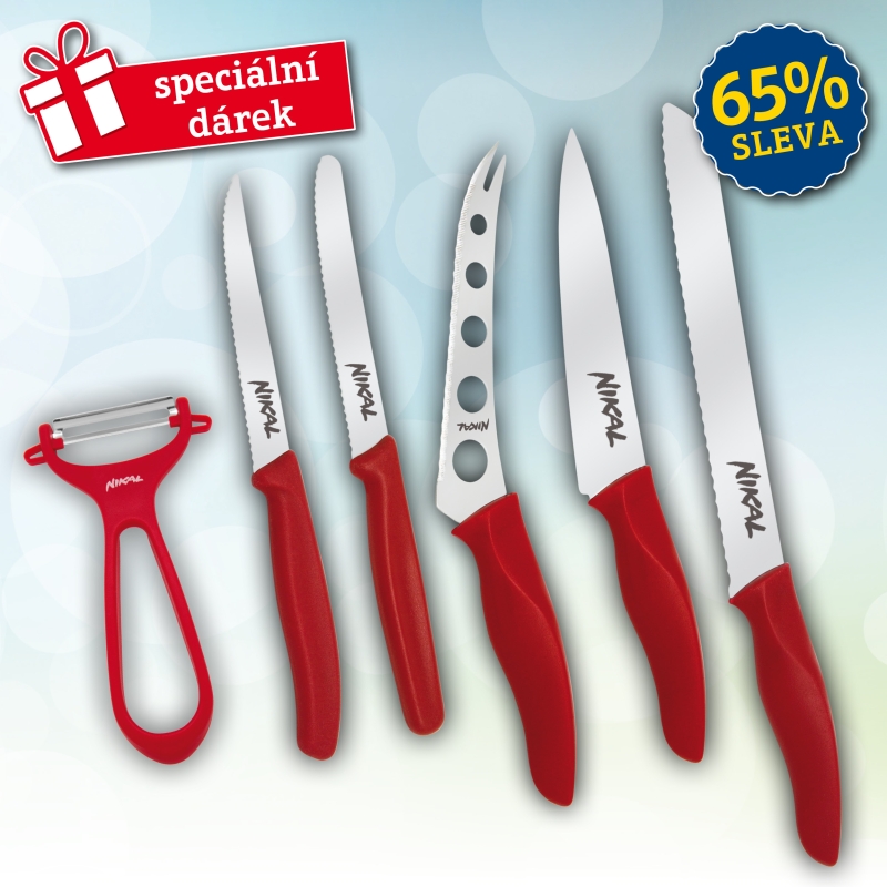 Nůž na rajčata: Speciální nůž s jemným zoubkováním pro snadné krájení rajčat a další zeleniny.