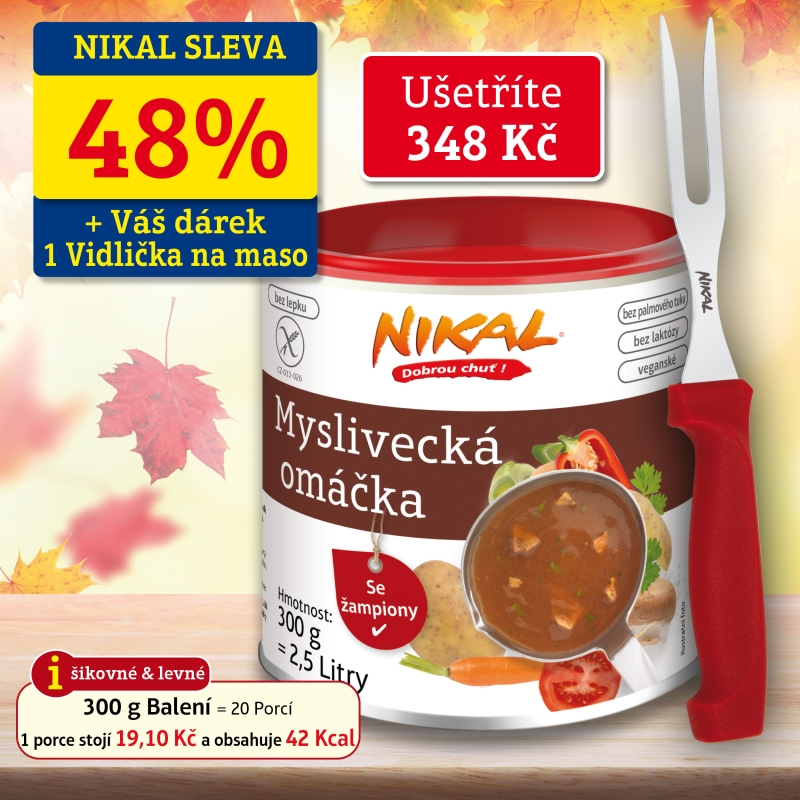 Myslivecká omáčka NIKAL je univerzální – výborná samostatně, ideální k zahuštění nebo dochucení dalších omáček. V každé kuchyni si najde své čestné místo.