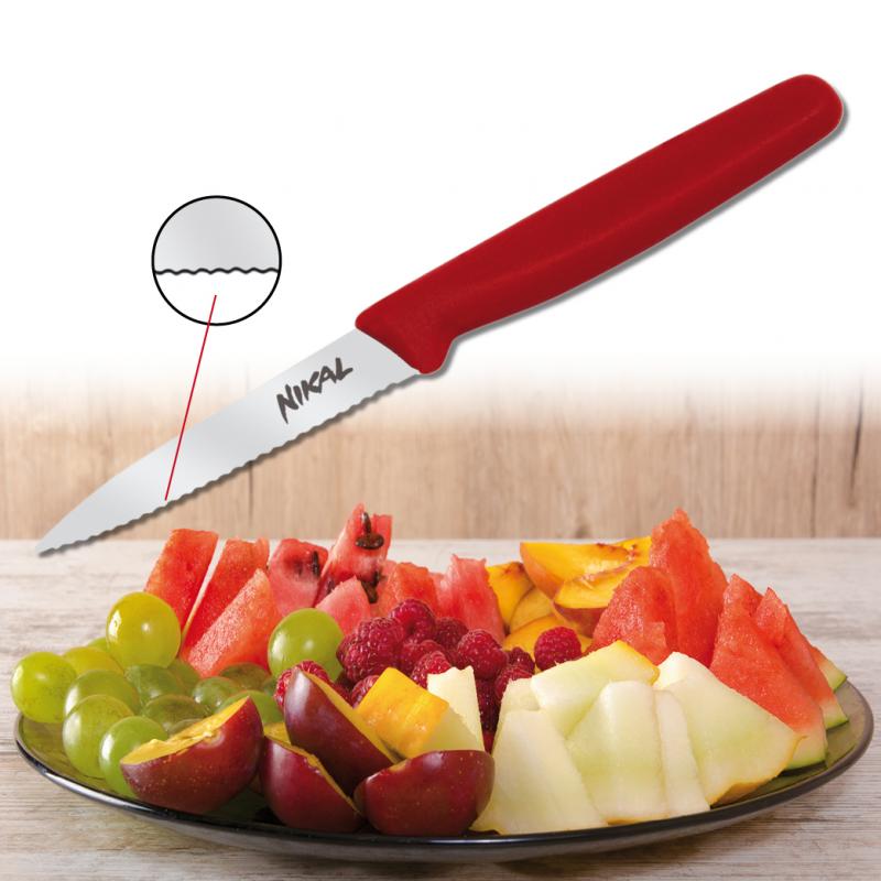 Malý a praktický nůž pro krájení, čištění, loupání a zdobení ovoce a zeleniny s pilovitým ostřím.