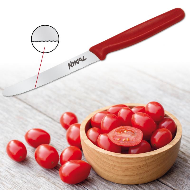 Originální kuchyňský nůž NIKAL by měl patřit do výbavy každé domácnosti. Nerezová čepel z ušlechtilé oceli a protiskluzová rukojeť z tvrzené umělé hmoty zaručují ideální krájení uzenin, ovoce, zeleniny i pečiva.
