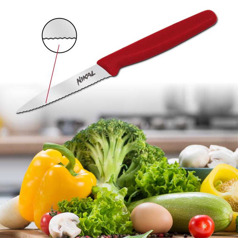 Malý a praktický nůž pro krájení, čištění, loupání a zdobení ovoce a zeleniny s pilovitým ostřím.