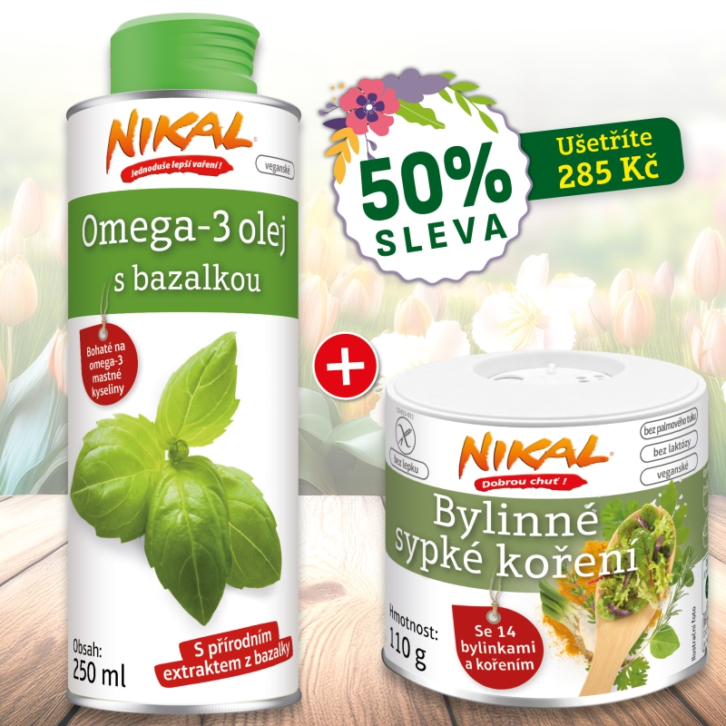 Jak NIKAL Stolní, tak i Omega-3 oleje jsou přirozeně veganské, bez lepku, bez laktózy a bez přidaného cukru. Uvedené vlastnosti slouží pro lepší orientaci v našem sortimentu.