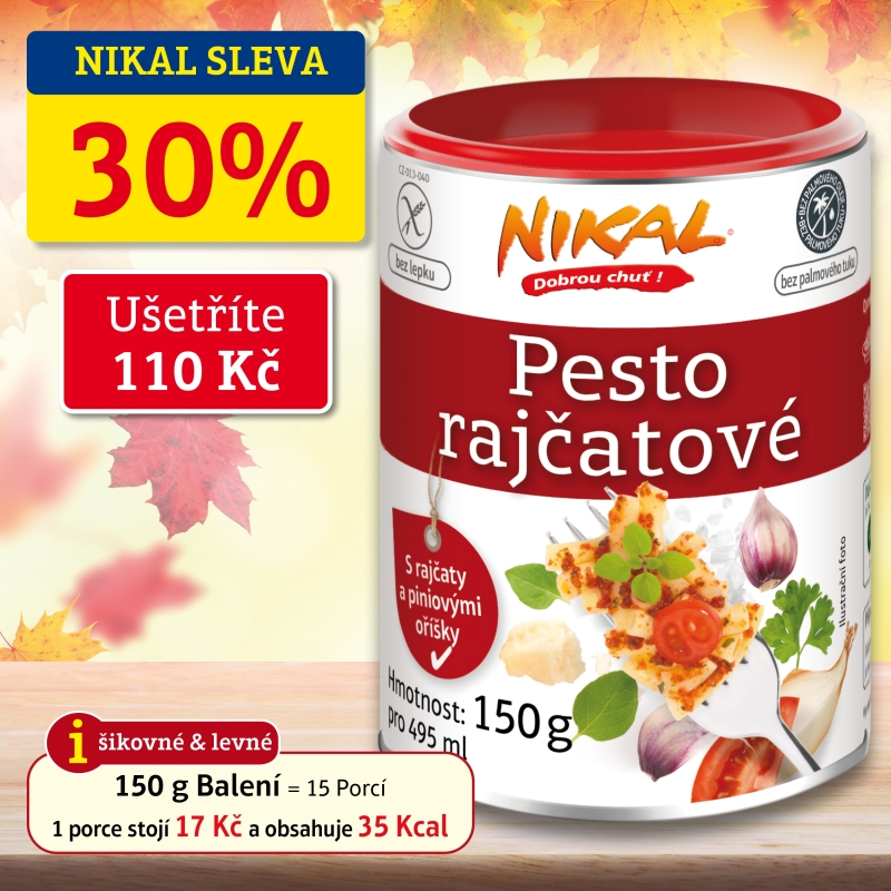 Jste připraveni na opravdový chuťový zážitek? Dopřejte si s NIKAL Rajčatovým pestem plnou chuť Itálie ve svém každodenním vaření! Je hotové během chvilky a snadno připravené. Jedno balení obsahuje přesný počet porcí. Stačí jen smíchat s trochou vody a olivového oleje – a pesto je hotové!