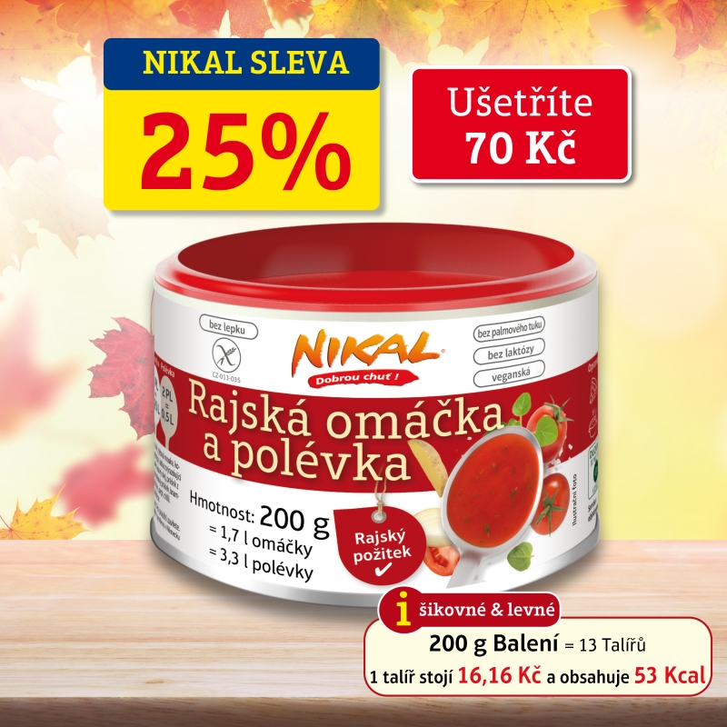 Pokud si zakládáte na lehké a vyvážené stravě, NIKAL Rajská polévka a omáčka Vás potěší – je veganská, bez umělých aromat, s obsahem vlákniny pro delší pocit sytosti.