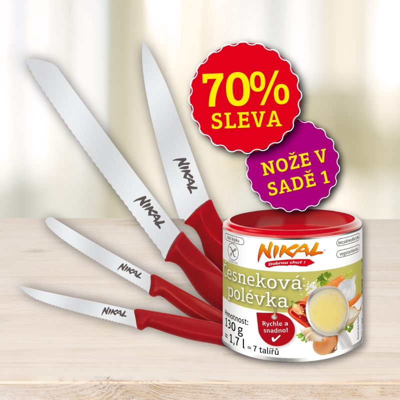 Představujeme špičkovou 4dílnou sadu kuchyňských nožů NIKAL, která je navržena pro každodenní použití i náročné kulinářské výzvy. Ostré čepele, kvalitní materiály a precizní zpracování zajistí snadné krájení pečiva, masa, zeleniny i steaků. Součástí balení je navíc lahodná česneková polévka jako malý bonus.