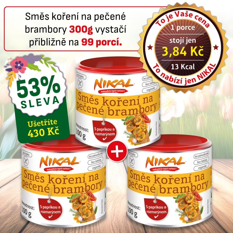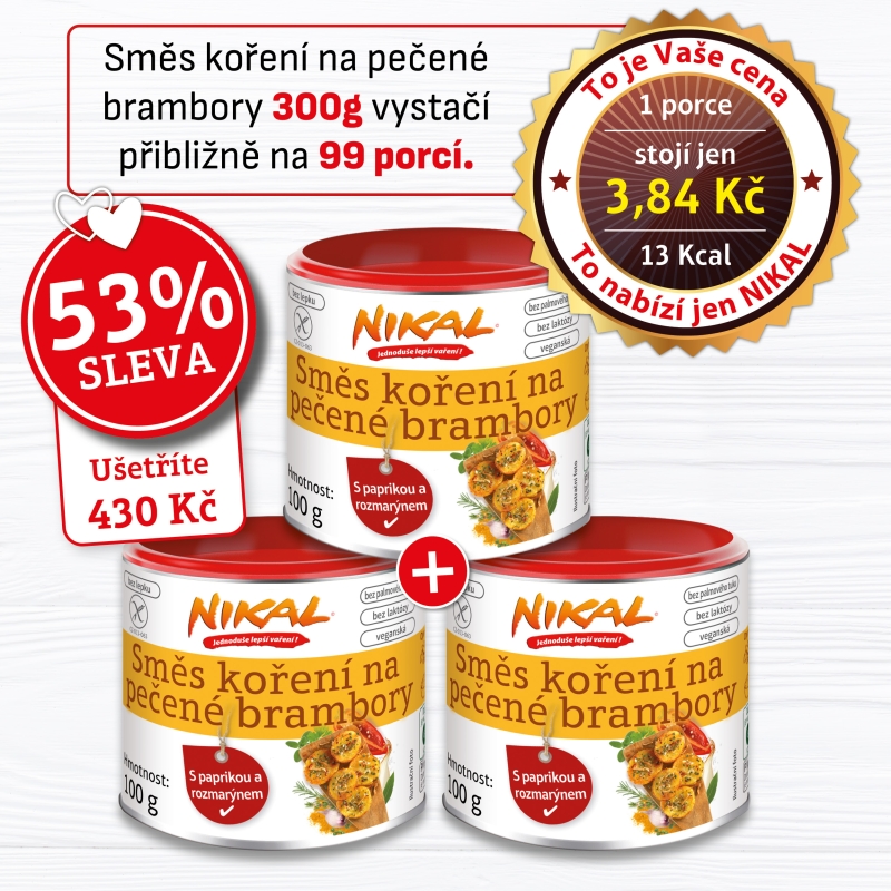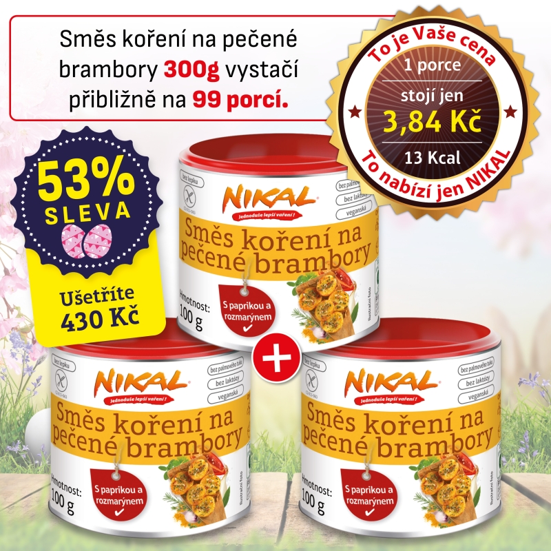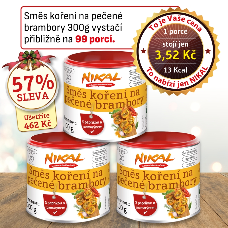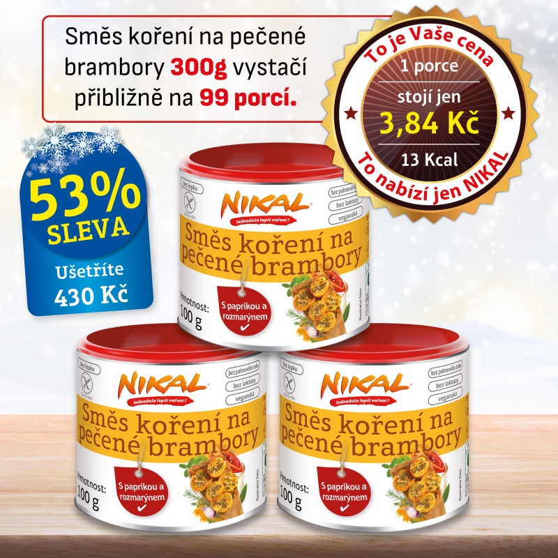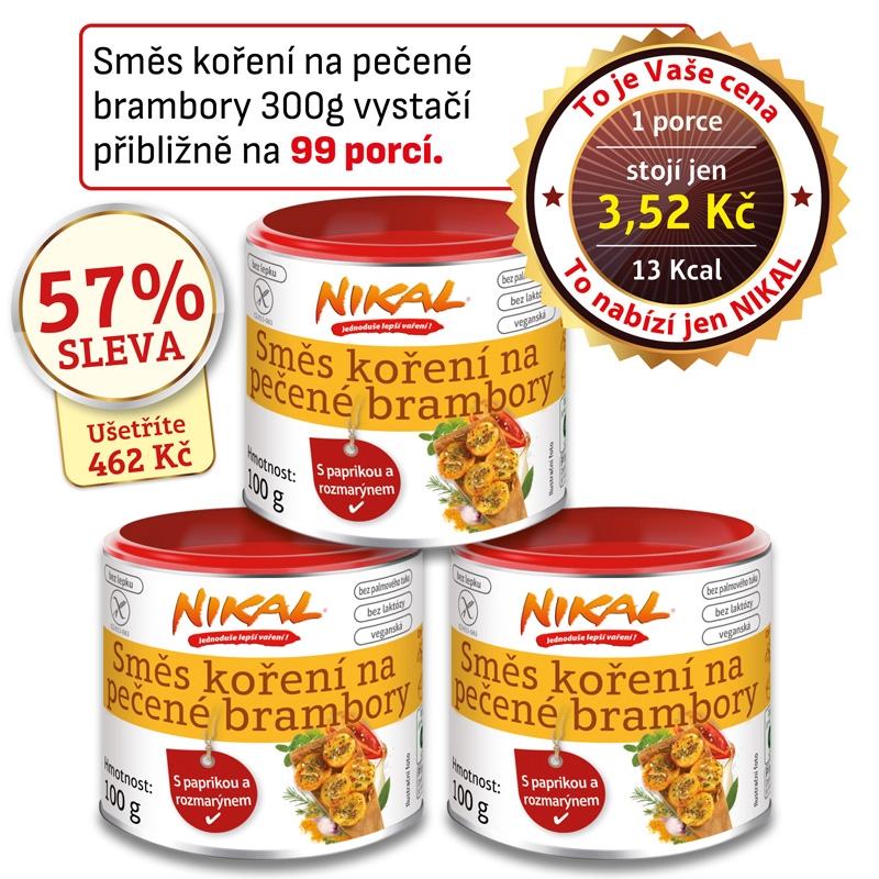 Nová směs koření na pečené brambory NIKAL kombinuje širokou škálu bylinných a kořenových vůní a vytváří skutečnou chuťovou explozi. Čerstvé aromatické bylinky, jako je tymián, rozmarýn a bazalka, jsou v kombinaci s petrželkou, česnekem, černým a zeleným pepřem, paprikou, rajčaty, koriandrem, majoránkou, bobkovým listem a kmínem, opravdu výraznou chuťovou pohádkou.