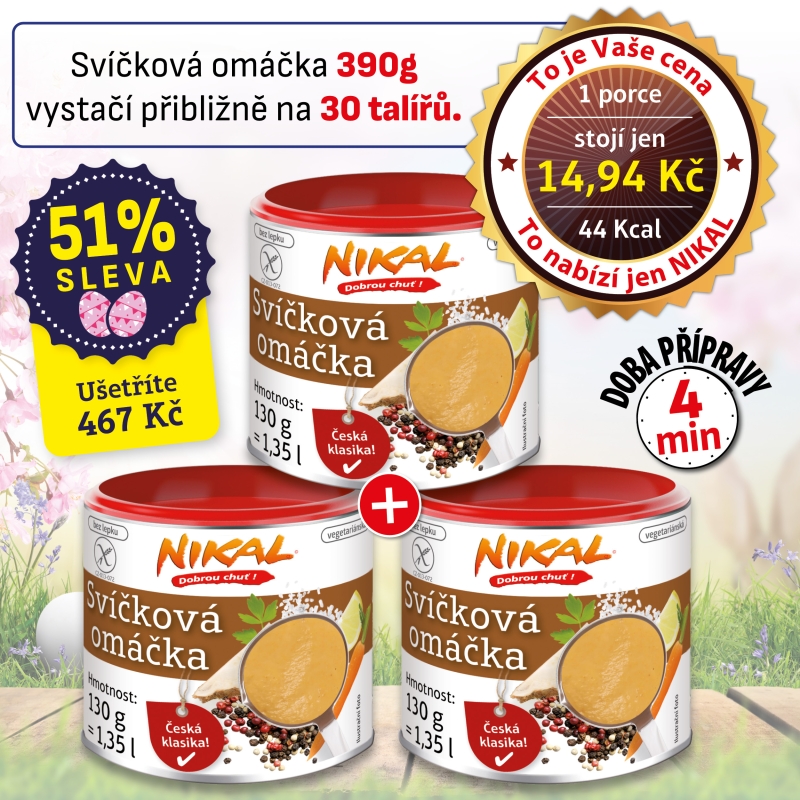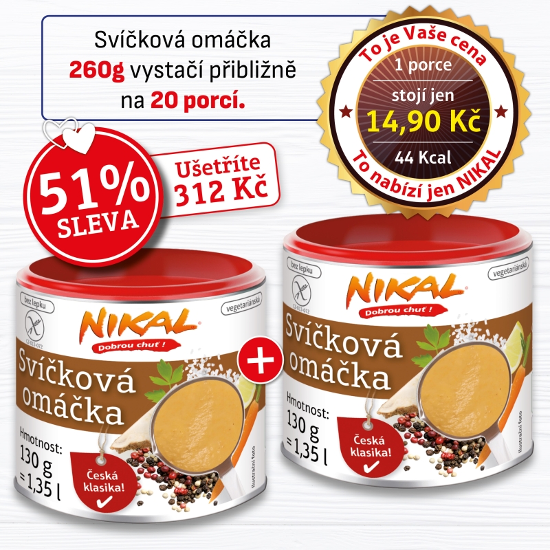Máte rádi tradiční české pokrmy plné bohatých a vyvážených chutí? Naše Svíčková omáčka je pečlivě připravena z nejkvalitnějších surovin, včetně čerstvé kořenové zeleniny jako mrkev, celer a petržel, které zajišťují autentickou chuť a vůni. Díky instantní formě je příprava této lahodné omáčky snadná a rychlá, což vám umožní vychutnat si klasickou českou kuchyni kdykoliv. Perfektně doplňuje hovězí, krůtí nebo vepřové maso. Tradičně ji podáváme s knedlíkem nebo těstovinami. Přidejte do svého jídelníčku kousek české tradice a potěšte své blízké jedinečnou chutí naší Svíčkové omáčky.