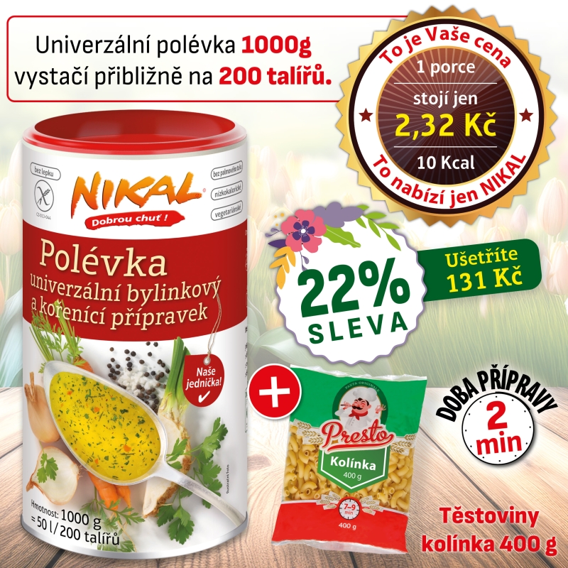 S NIKAL Polévkou připravíte čirý zeleninový základ jednoduše a rychle – stačí smíchat s vodou.
